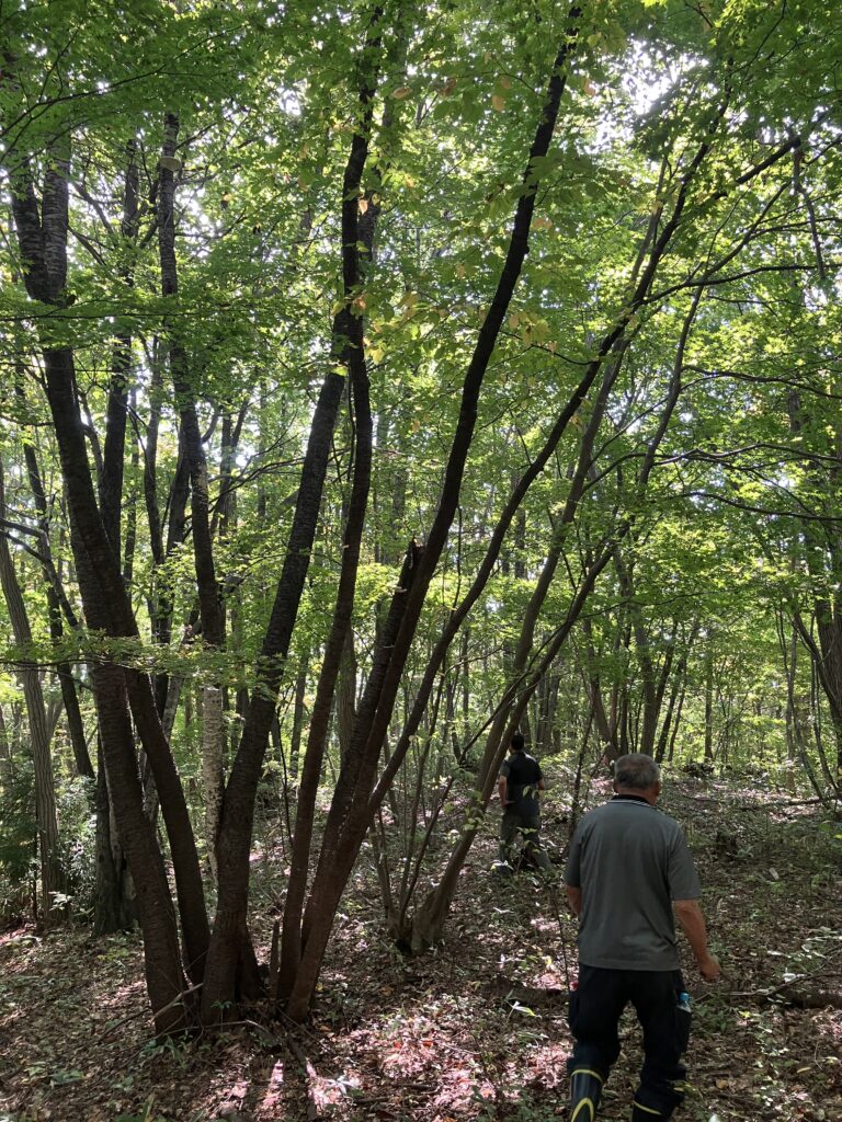 ここの山はヤマモミジが多く、株元が歪んでいる理由を積雪に負けずに育ったという理由を聞いて自然の逞しさに感動。あとここ熊がいた形跡がありました。