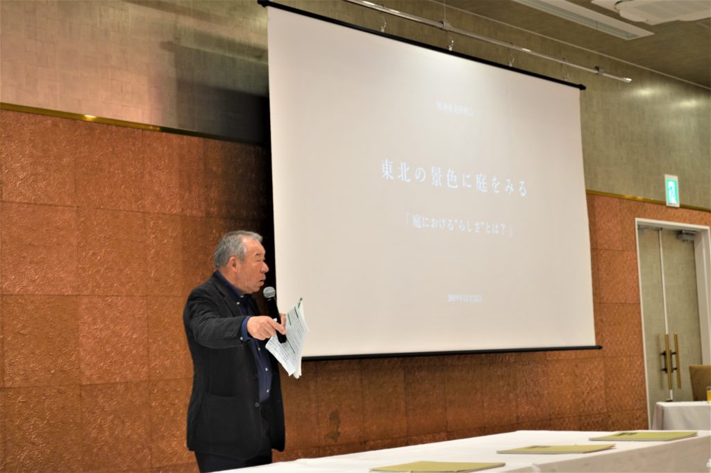べネシアンホテル白石蔵王にて開会式挨拶の後、講師 豊藏氏による『庭における”らしさ”とは』の講演。