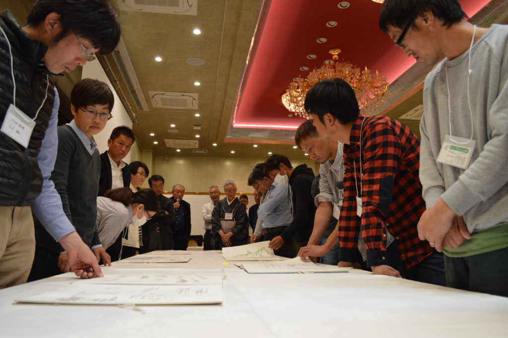 実際のスケッチブック、手書きの図面に皆さん夢中になって拝見しておりました。庭を実現するために図面やスケッチなどのプレゼンテーション力の必要さ、作品にどれだけの熱量や思いが込められているかを感じ、感化されました。一日一絵のお話など、常日頃からアンテナを張り続け準備をし、研ぎ澄ませることがいかに大事か痛感致しました。