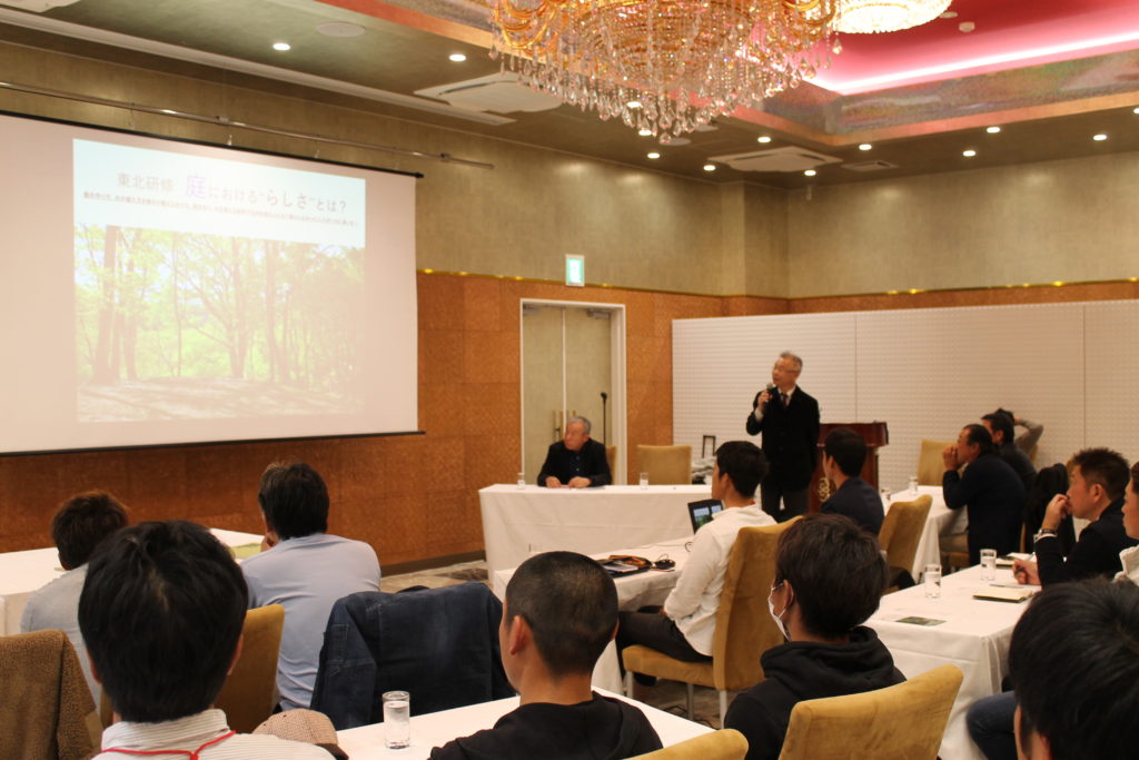 ・今回の東北研修会のテーマである「庭におけるらしさとは」を掘り下げた大北先生の講演、スケッチブックや図面、一日一絵のお話など、一流の物を創るのに、依頼が来てからではなく、常日頃からアンテナを張り続け準備をし、研ぎ澄ませることがいかに大事か痛感いたしました。